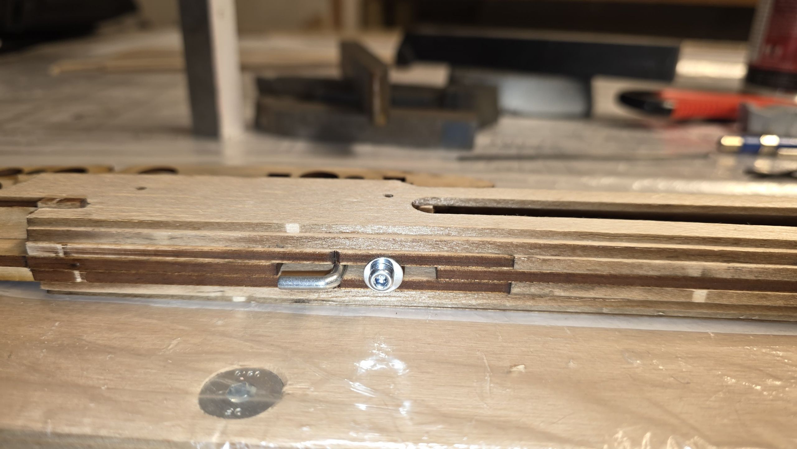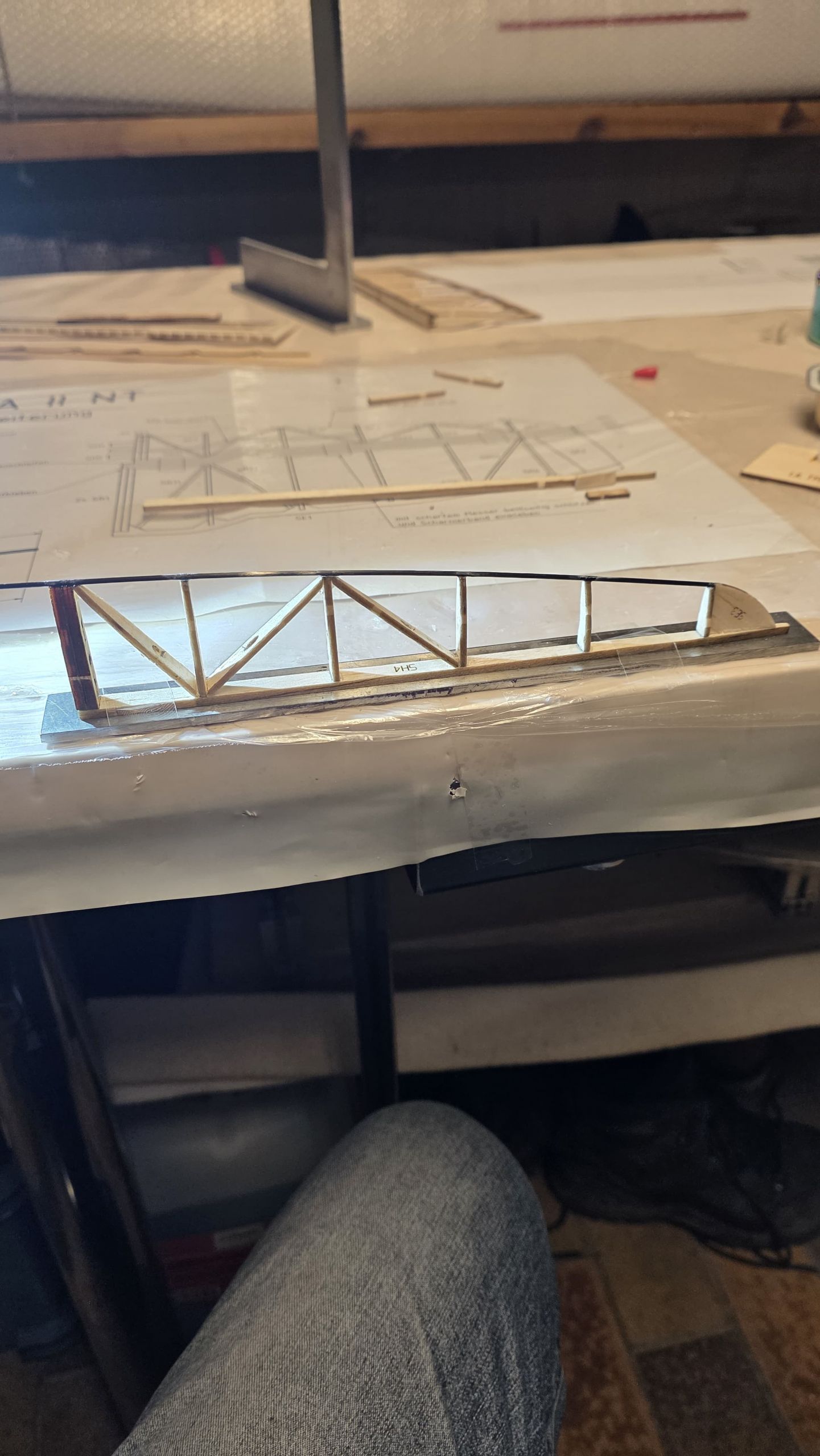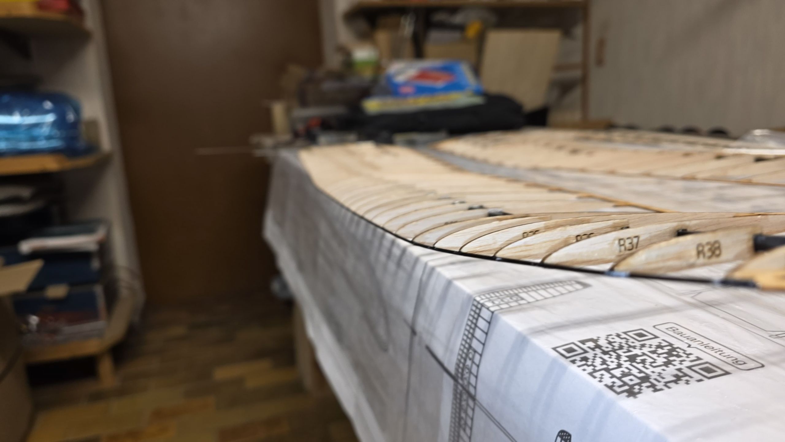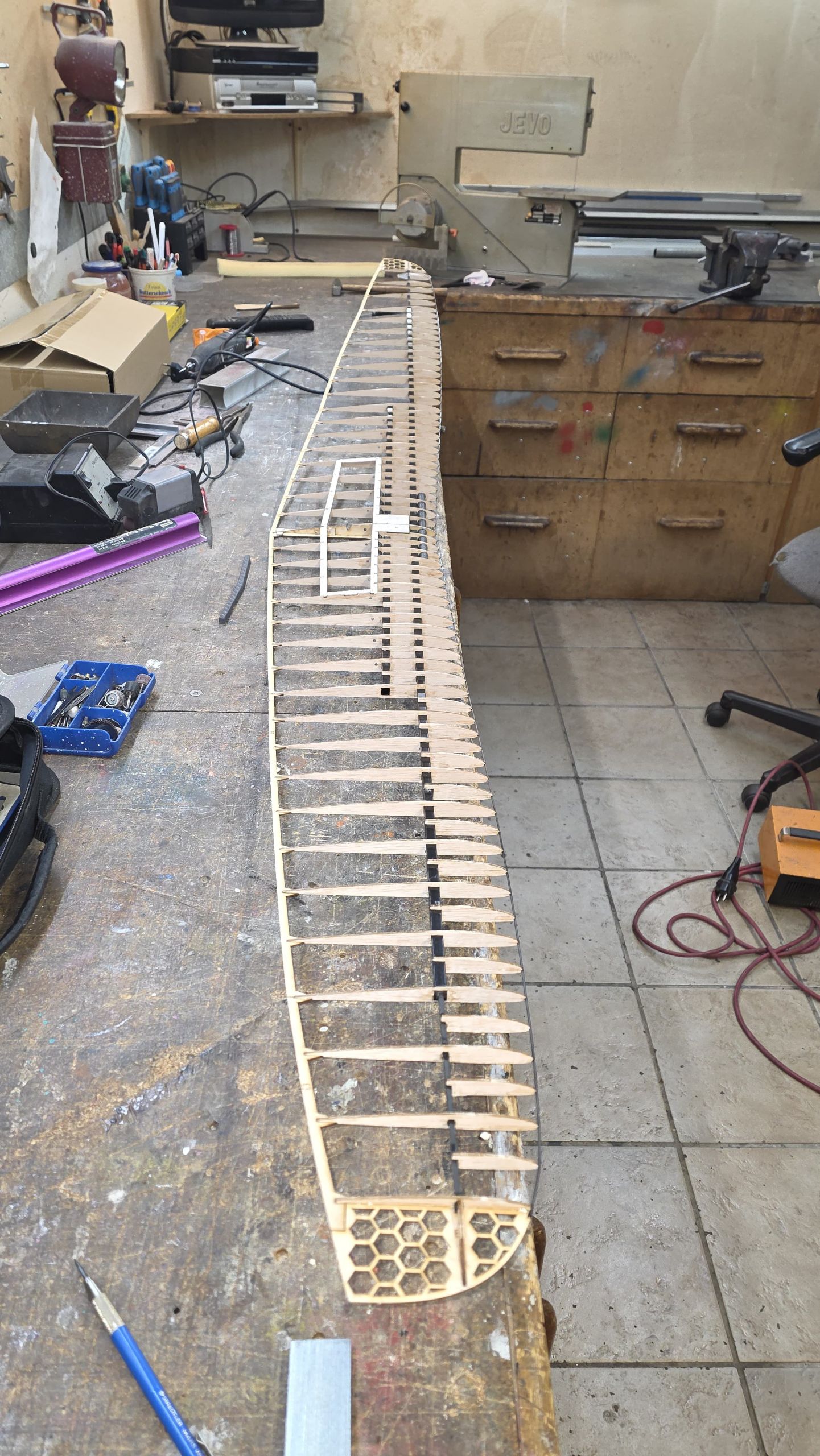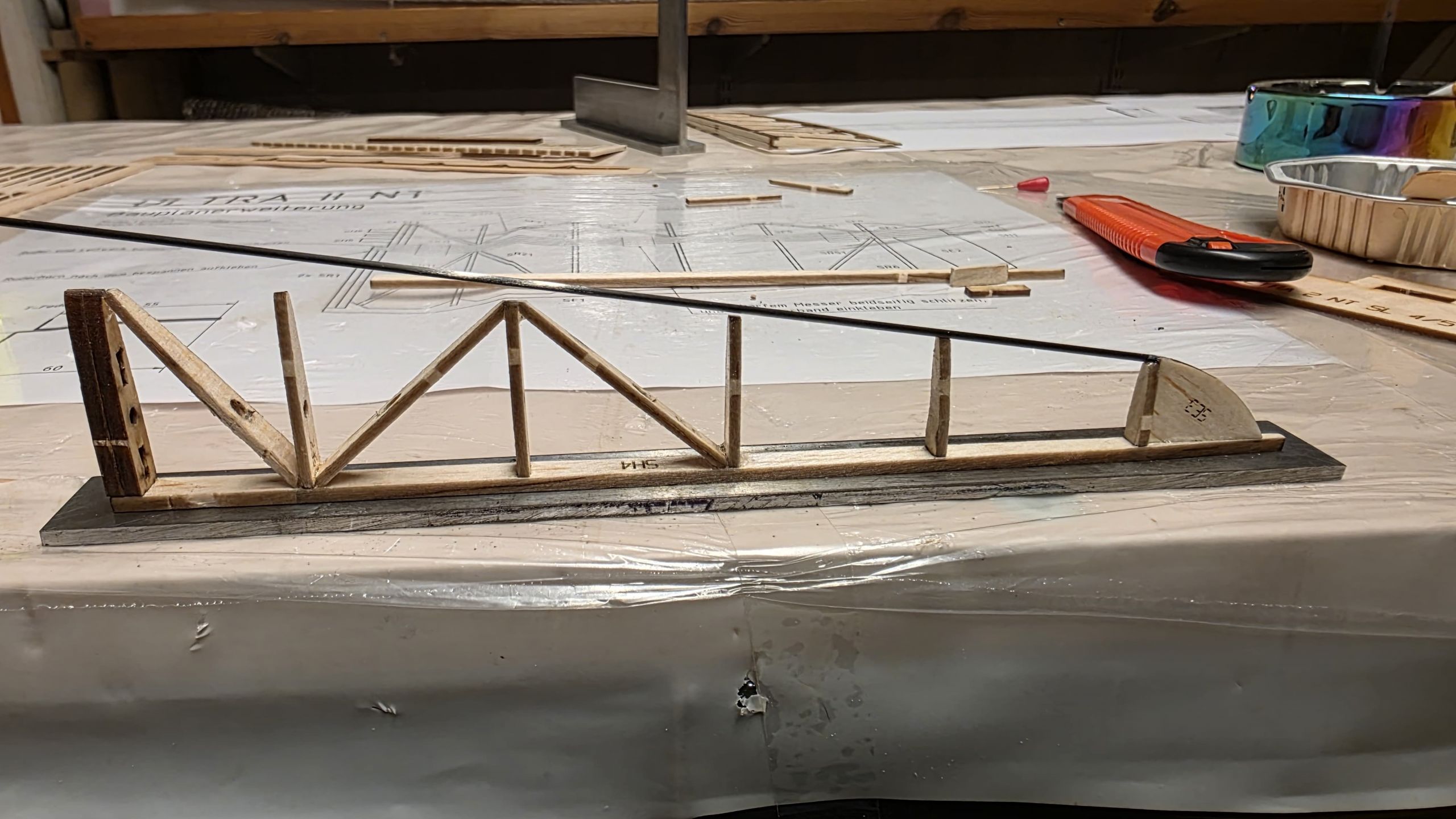 📐 Zuerst habe ich den Rumpf zwischen zwei Winkel gestellt und durchgepeilt, um die genaue Ausrichtung sicherzustellen.