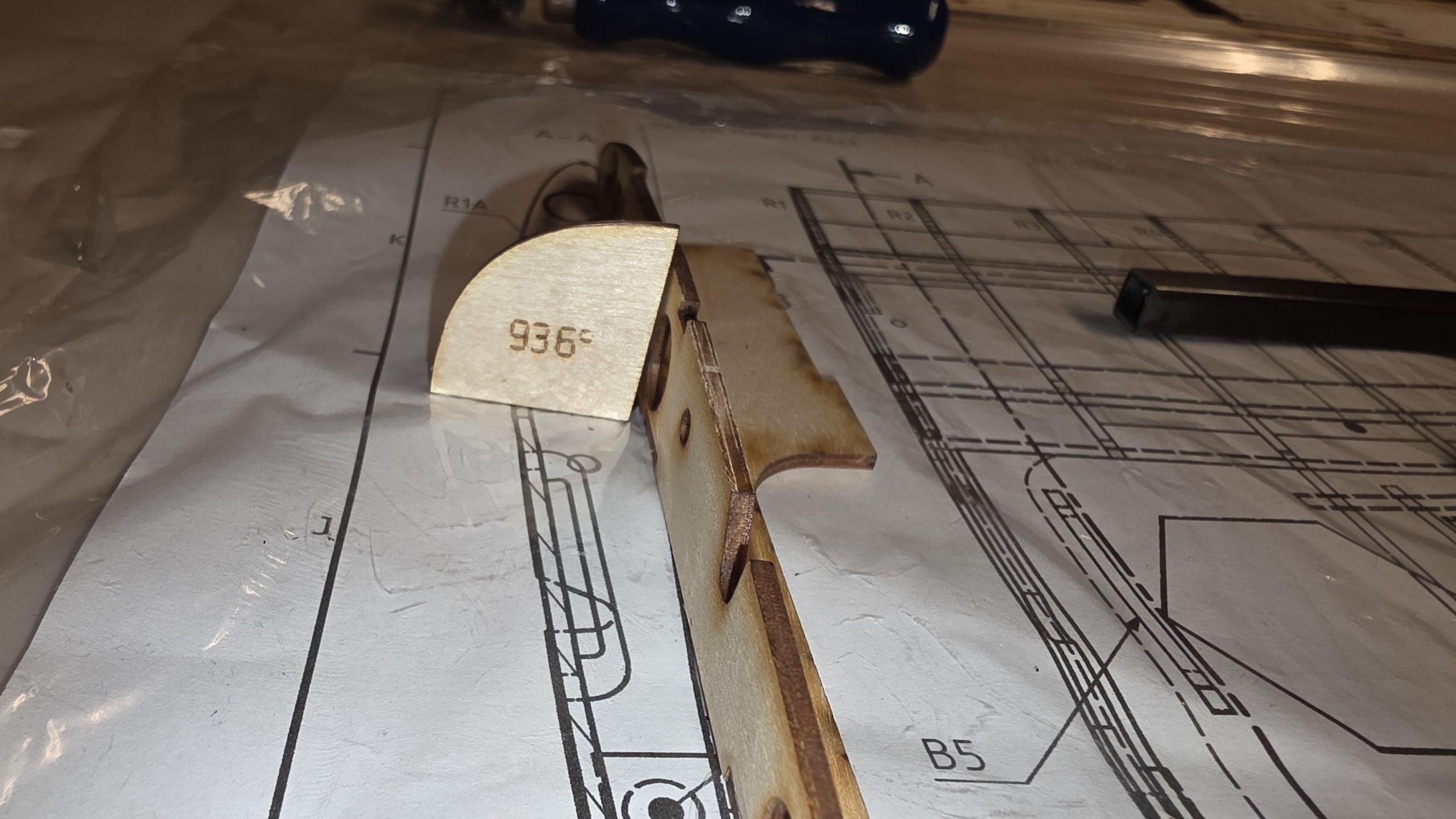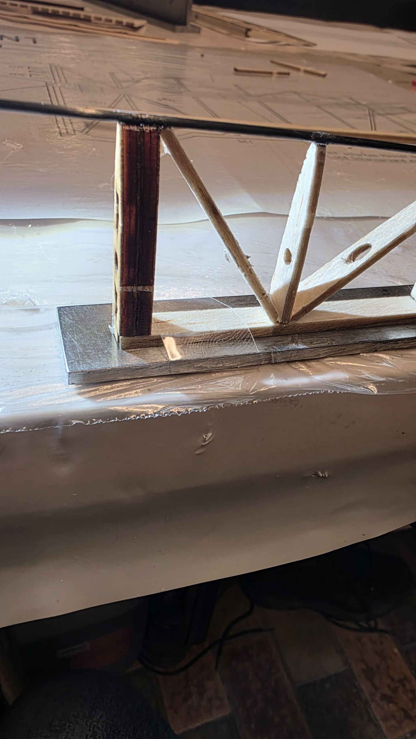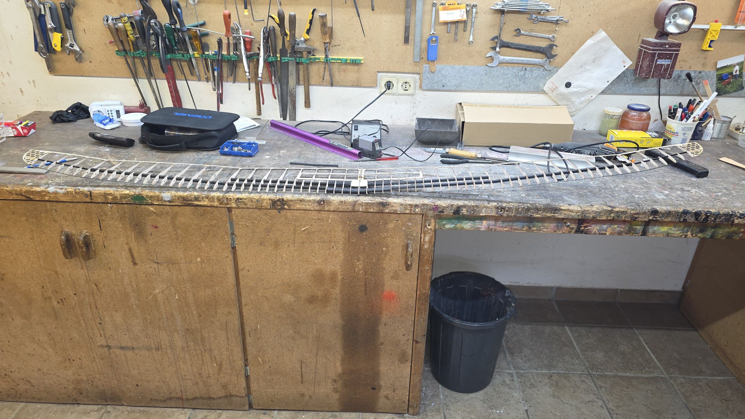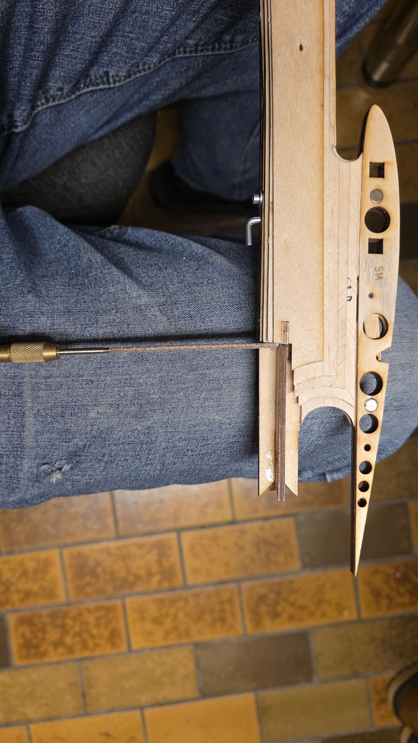 📐 Zuerst habe ich den Rumpf zwischen zwei Winkel gestellt und durchgepeilt, um die genaue Ausrichtung sicherzustellen.