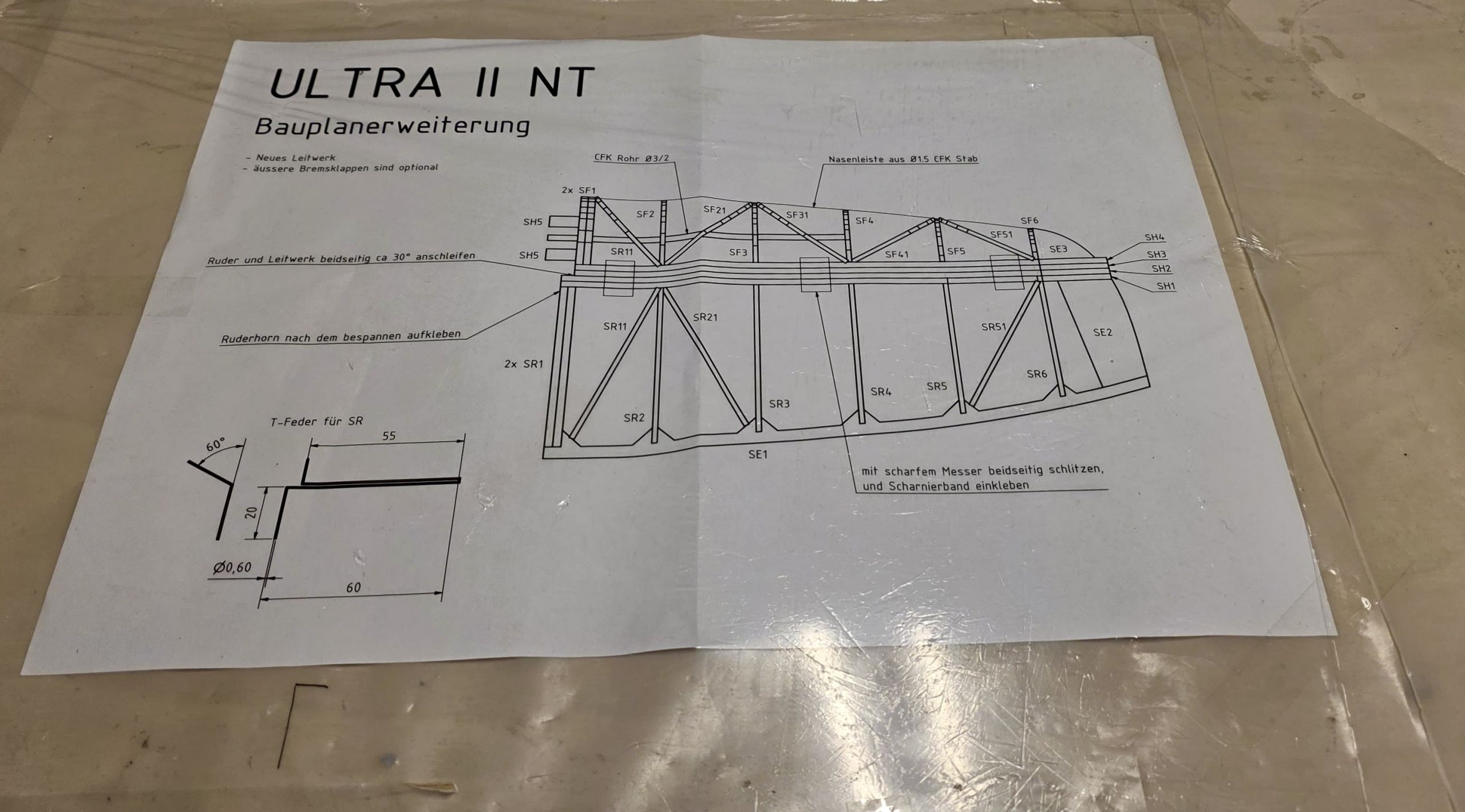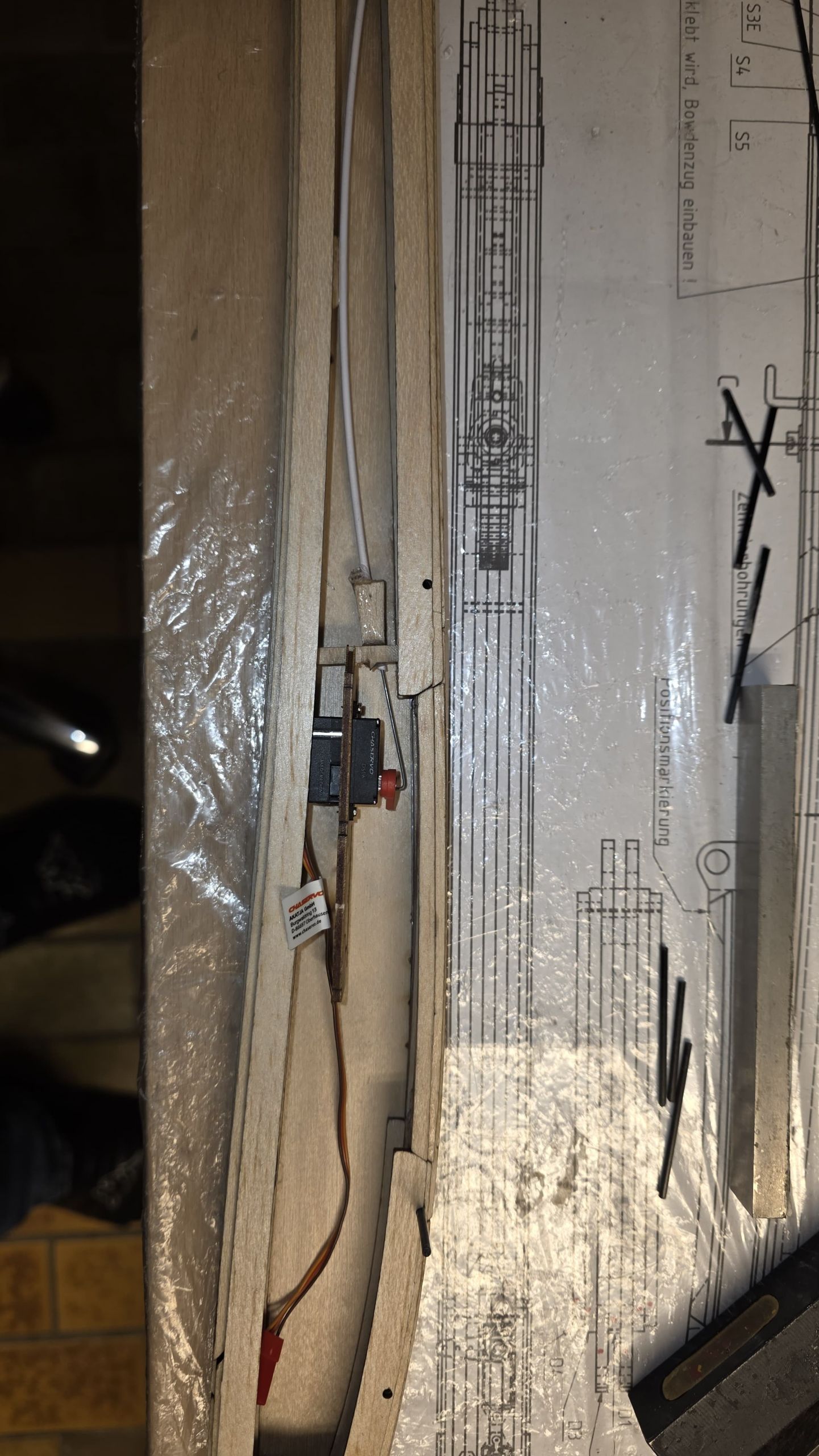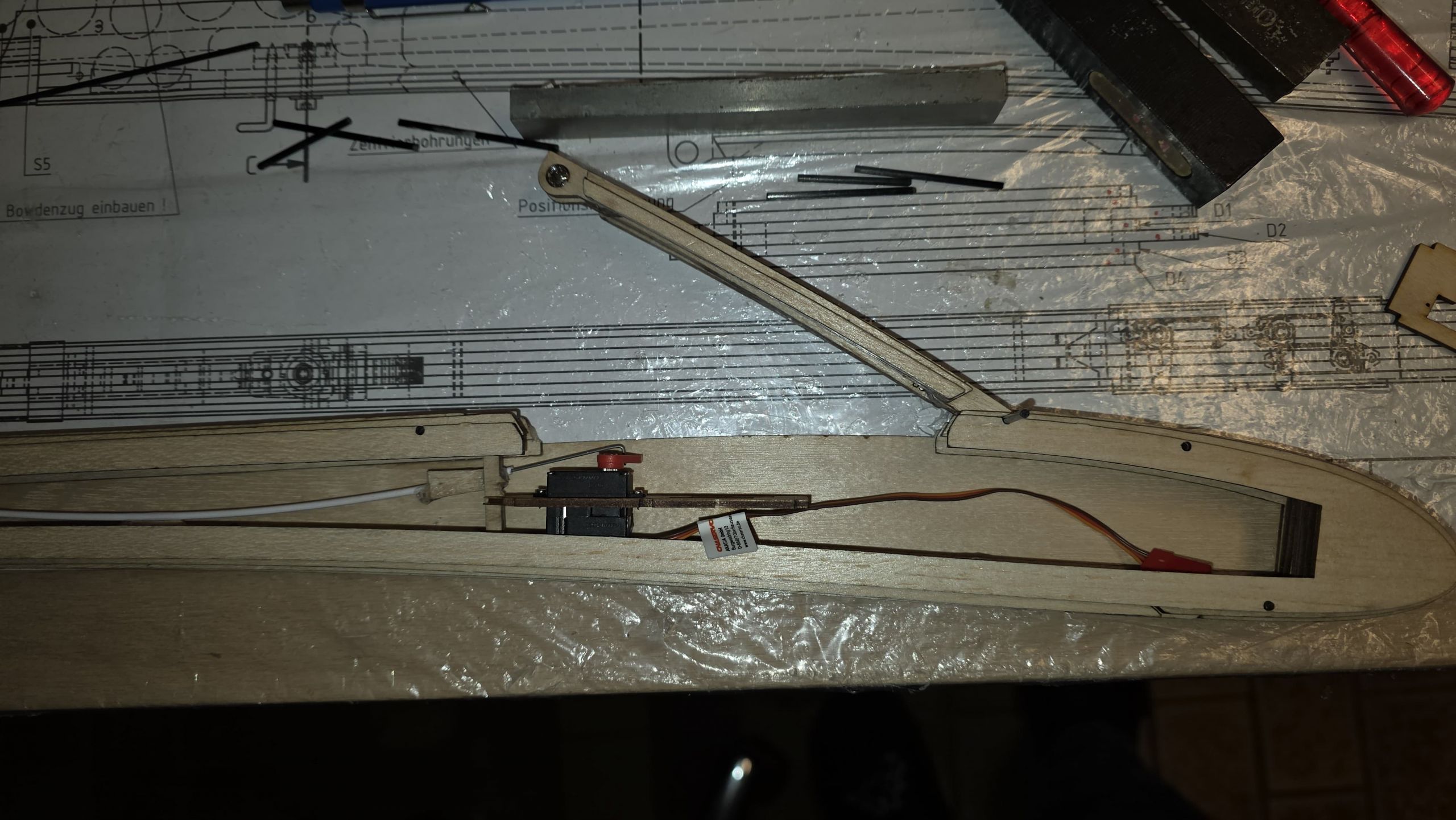 📌 Ursprünglich wollte ich Bowdenzüge für HR und SR einbauen und zudem das Höhenruder abnehmbar gestalten.