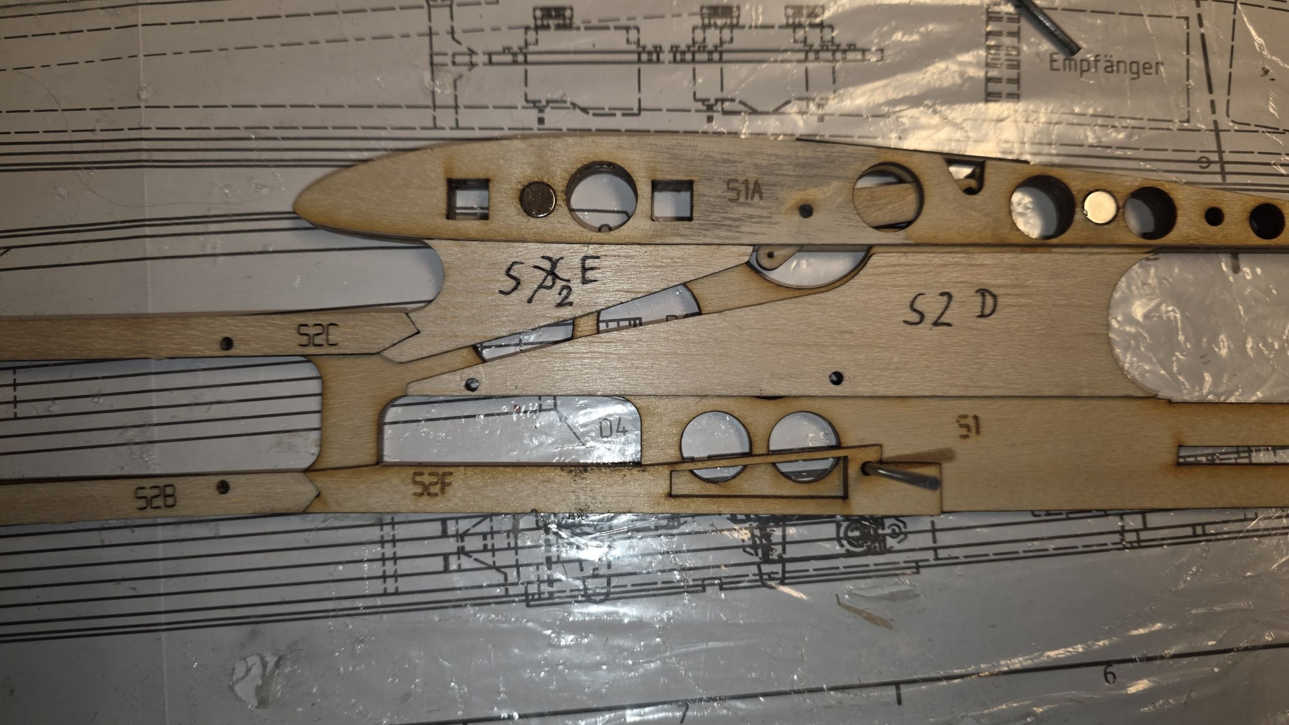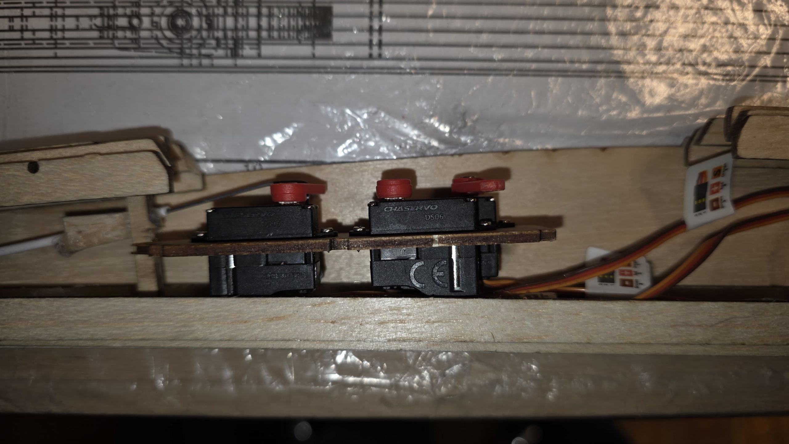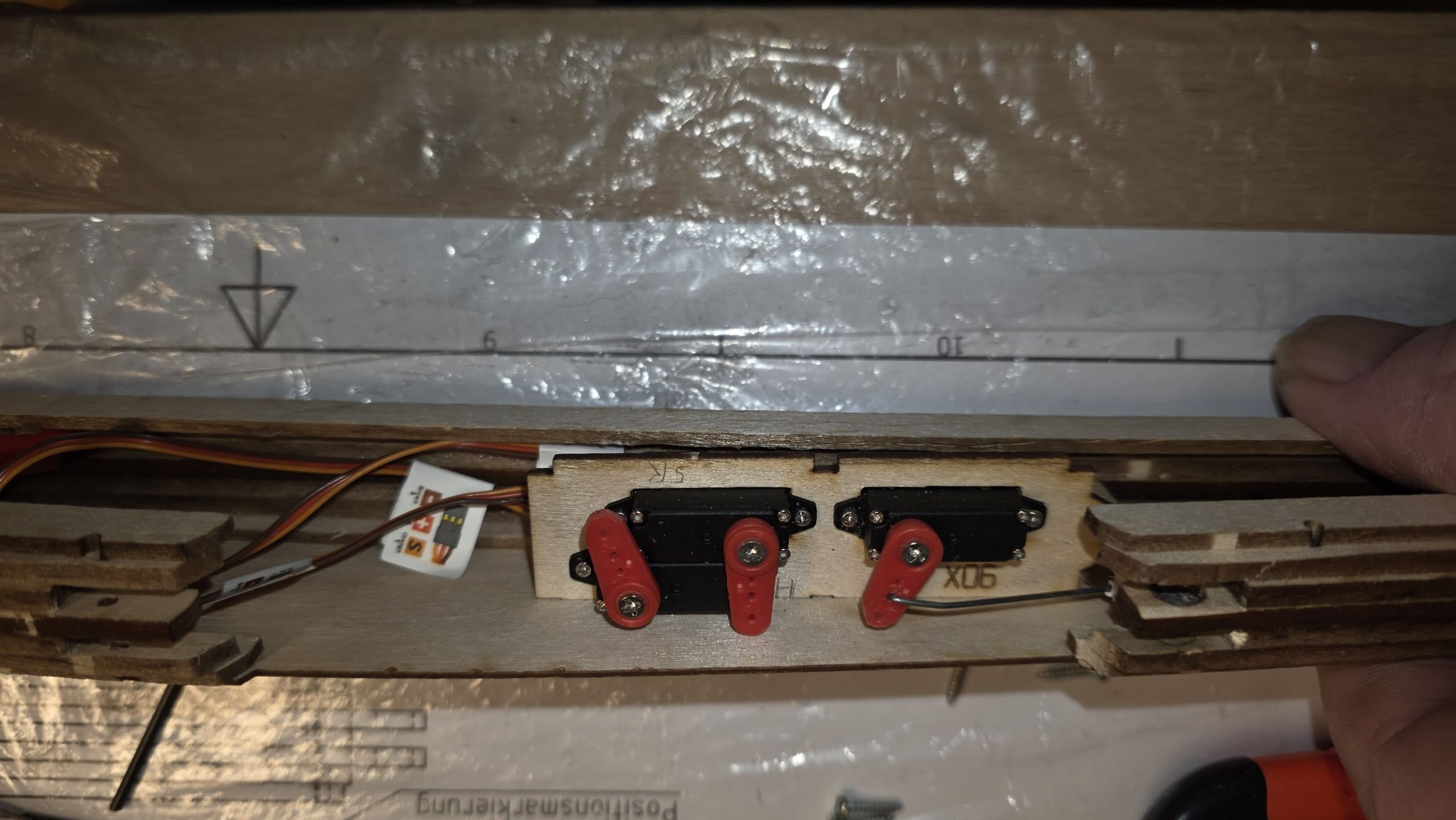 Sind alle vier Schichten angeklebt, sollte man das Servobrett sowie die Servos einpassen.