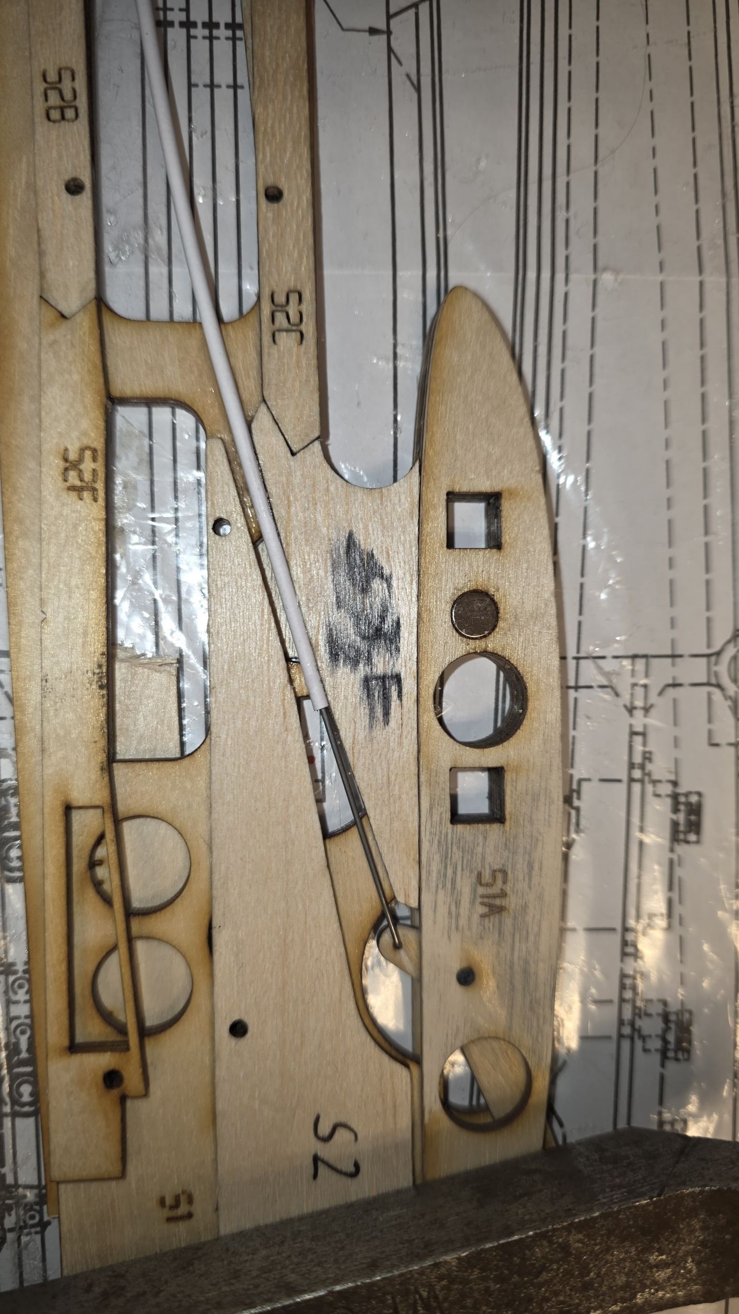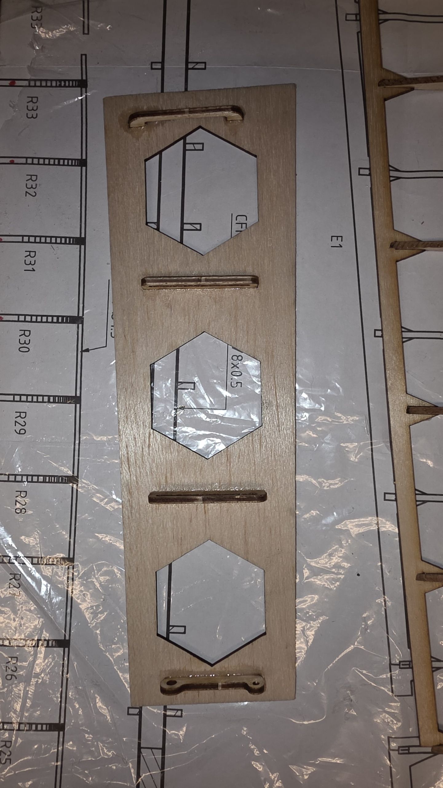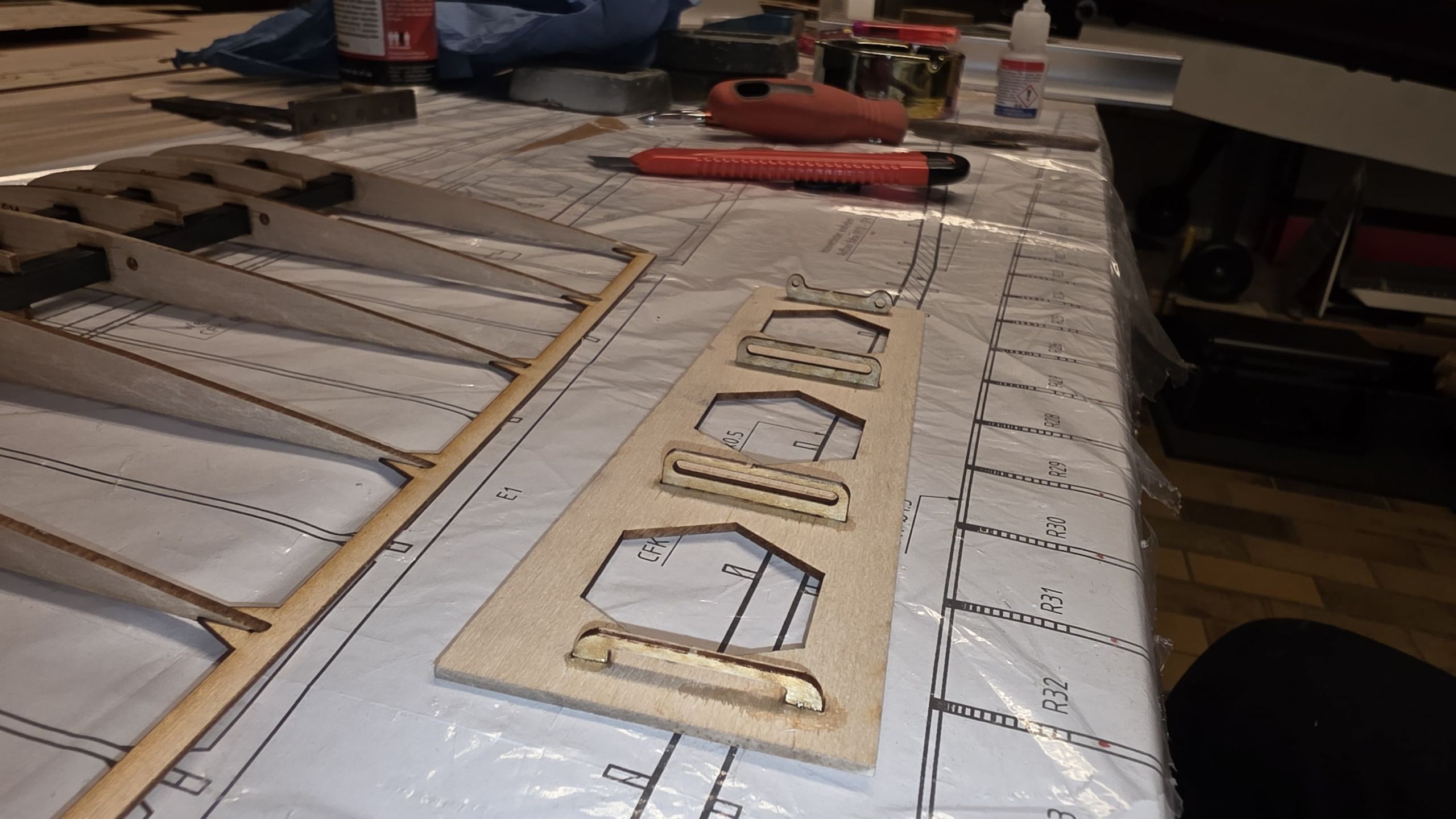 Sind alle vier Schichten angeklebt, sollte man das Servobrett sowie die Servos einpassen.
