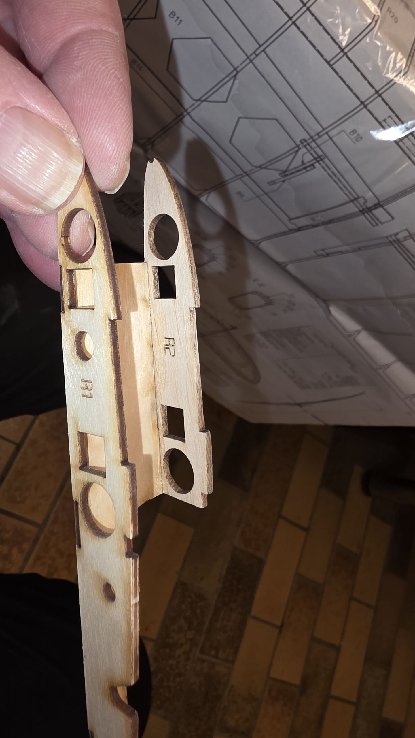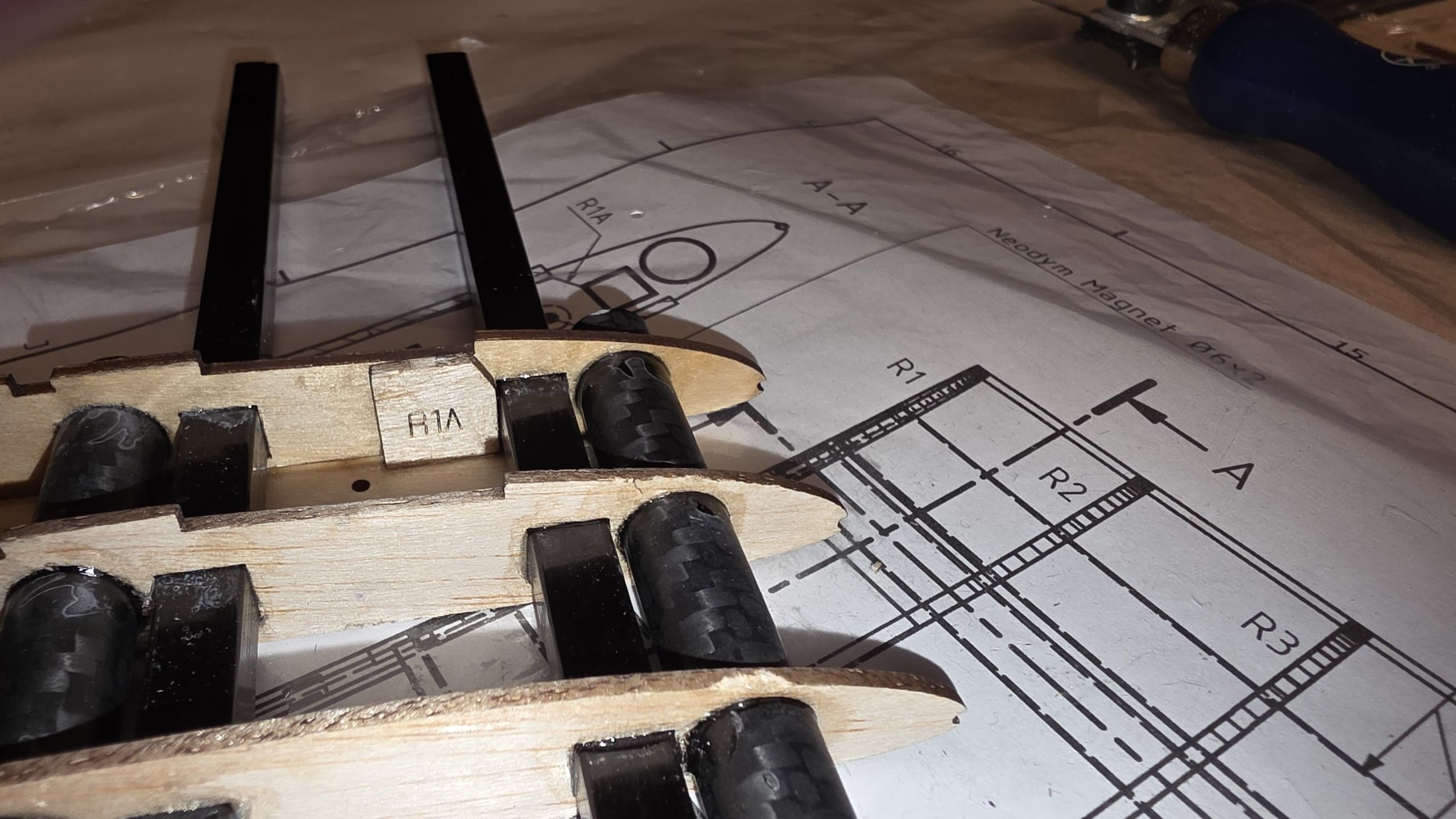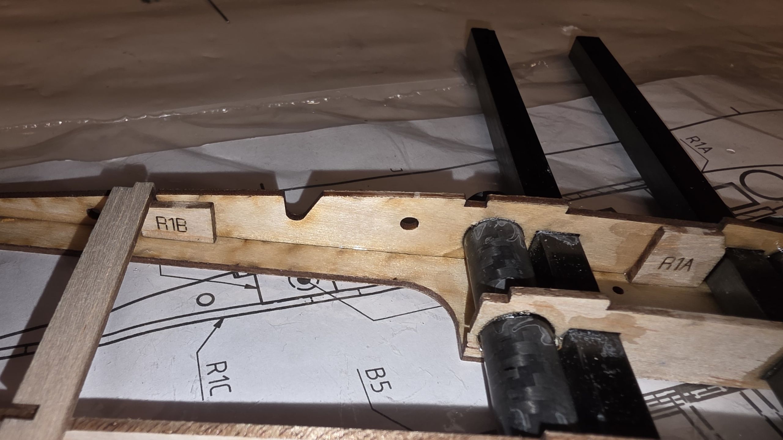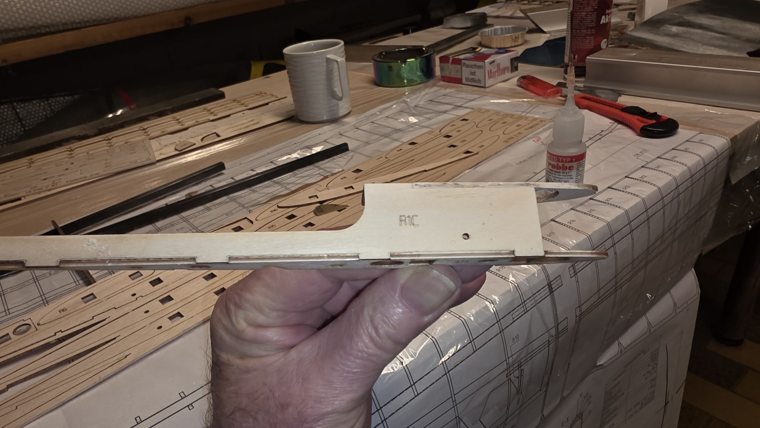 Die Wurzelrippe wird mit dem Unterteil R1C verklebt.