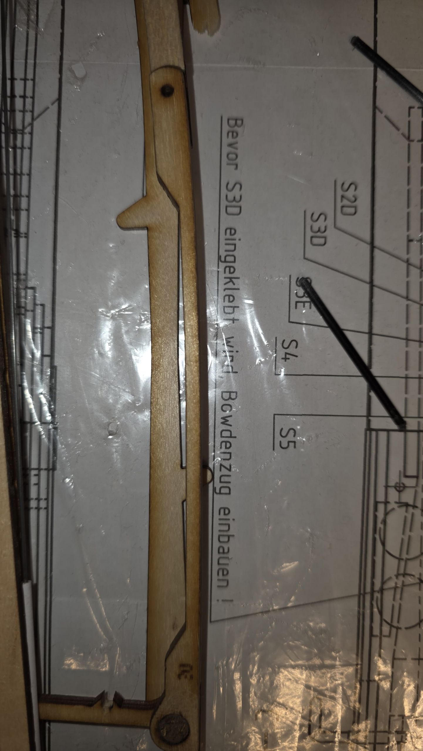 In diesem Schritt habe ich auch gleich den Bowdenzug der Klappen auf das richtige Maß gebracht und verklebt.