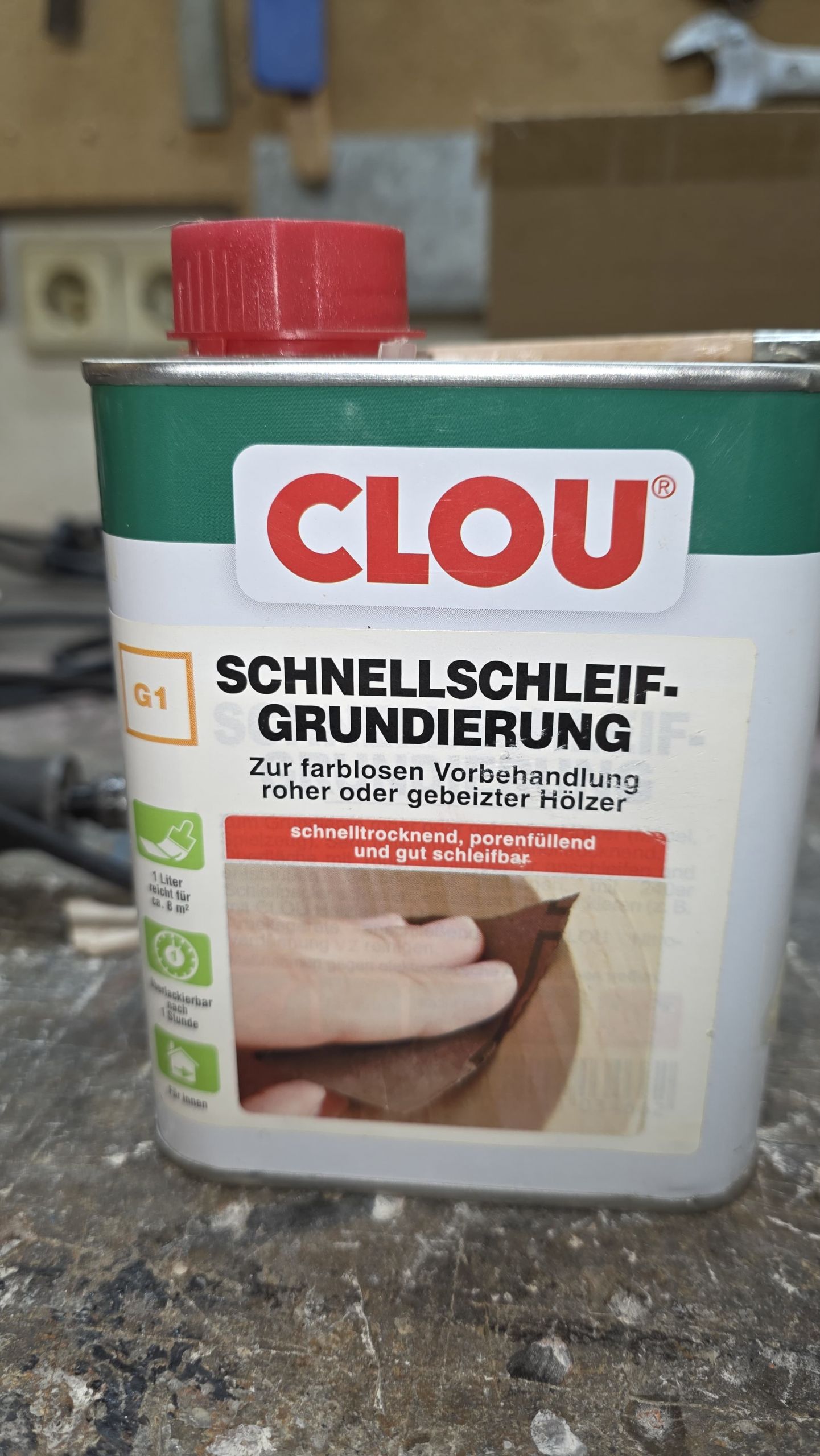 🖌️ Anschließend wurde er mit Porenfüller gestrichen.