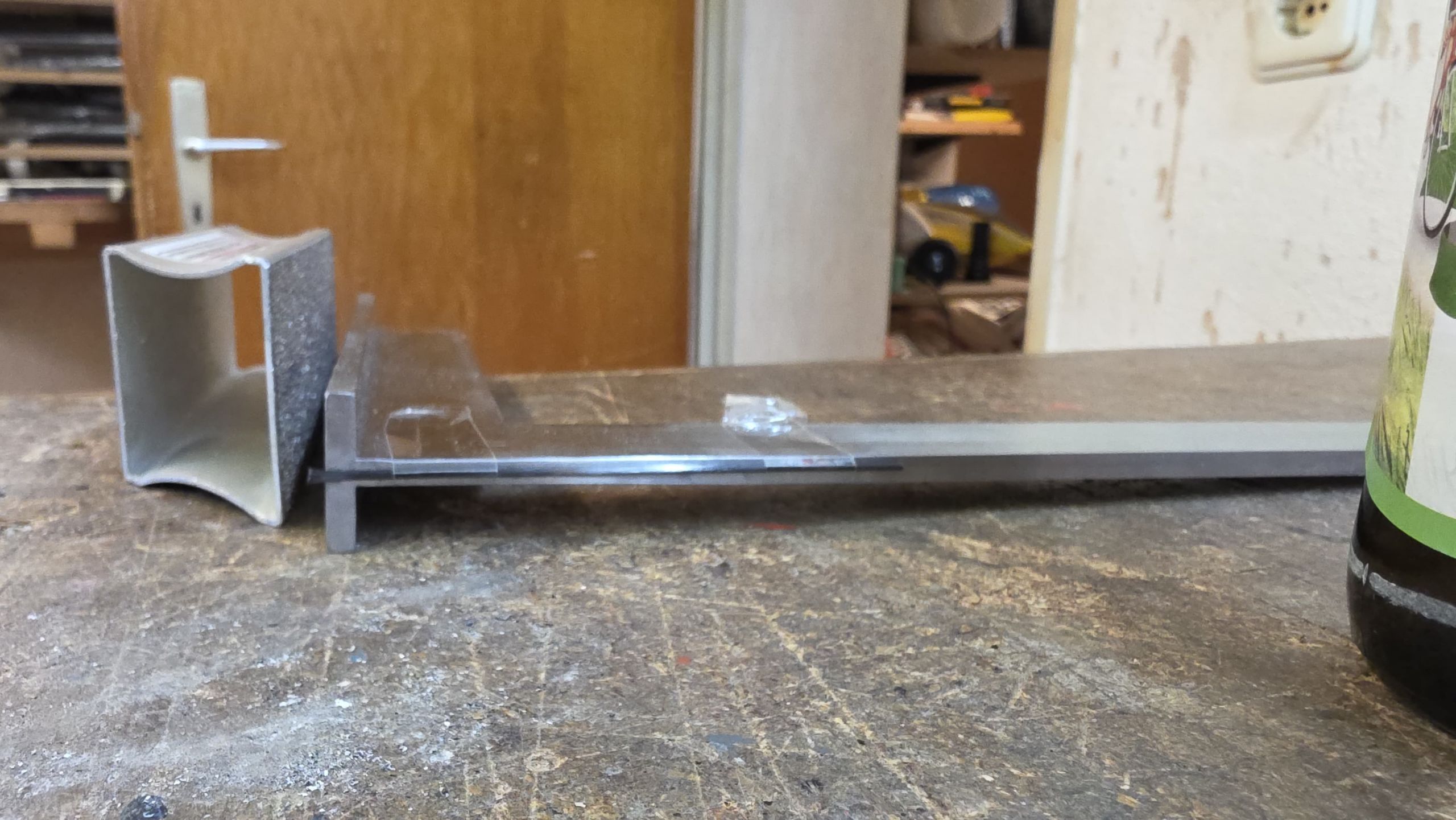 - Endleiste mit Tesa auf einem Flacheisen fixieren