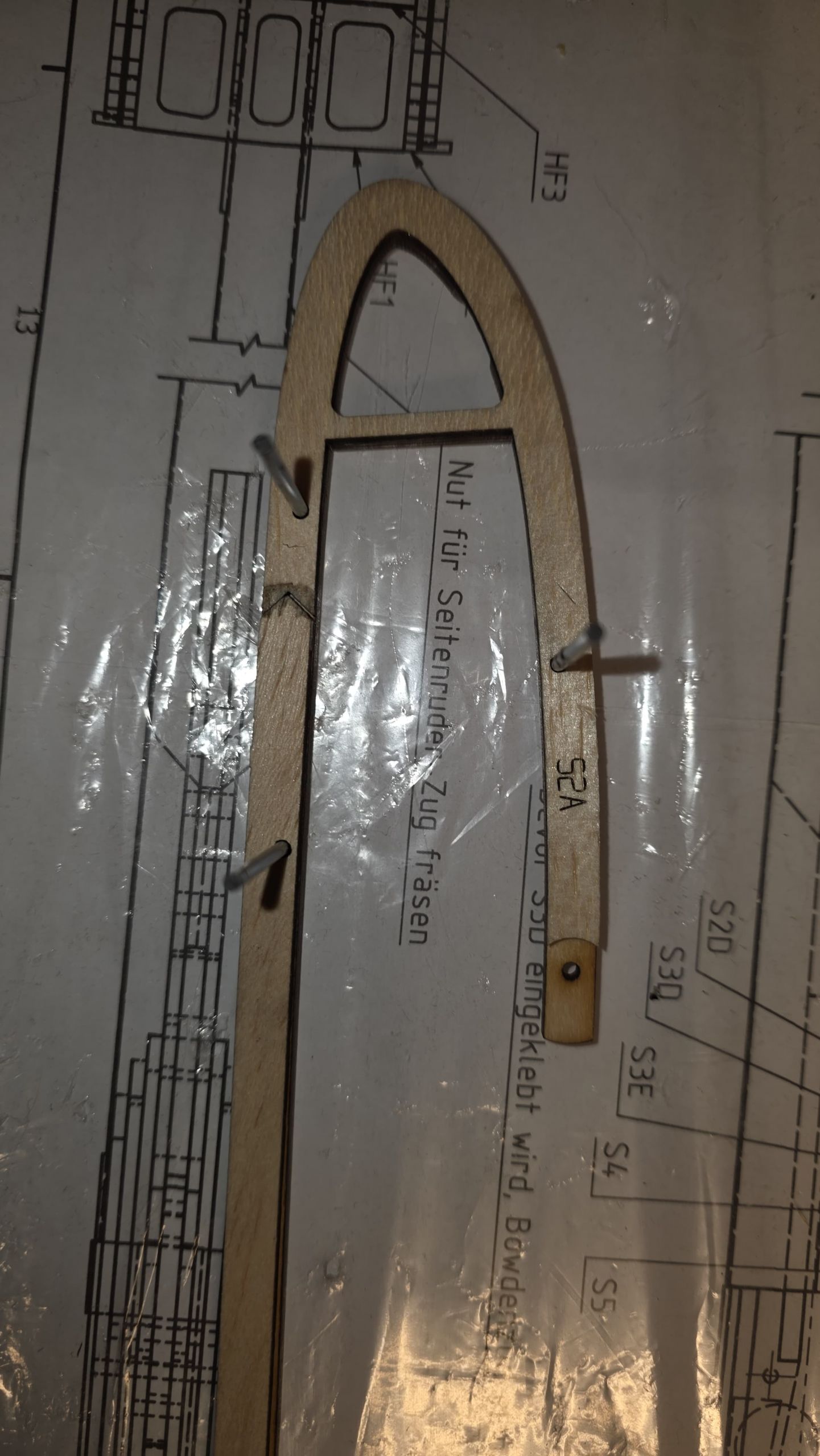 Mit 2‑mm‑Zentrierstiften (S2A) auf die Mittelrippe arbeiten und diese sauber verkleben.